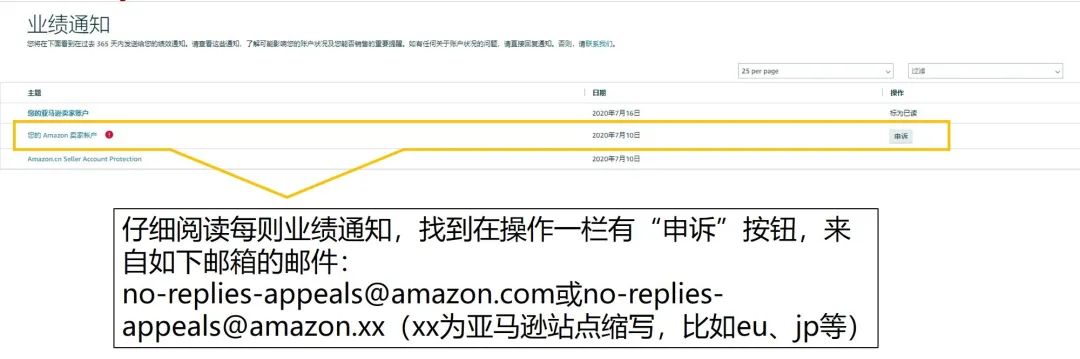 您会收到在操作一栏有“申诉”按钮,一般来自如下邮箱的业绩通知: