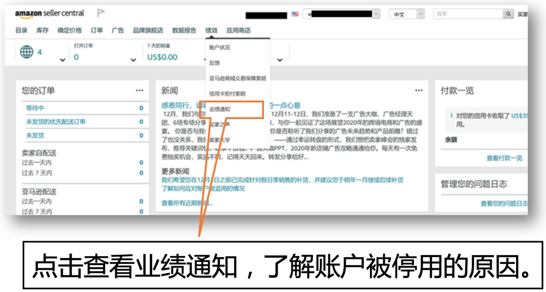 ▼方法一:进入卖家平台,通过 绩效-账户健康-请查看您的指标并重新激活您的账户