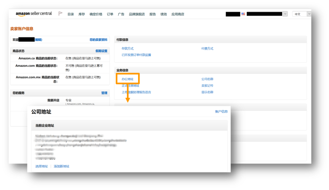 如果您正在经历账户停用的时期,请务必在申请申诉前,检查您所填写的办公地址。(您的公司名称与地址将于“卖家资料”页面显示)